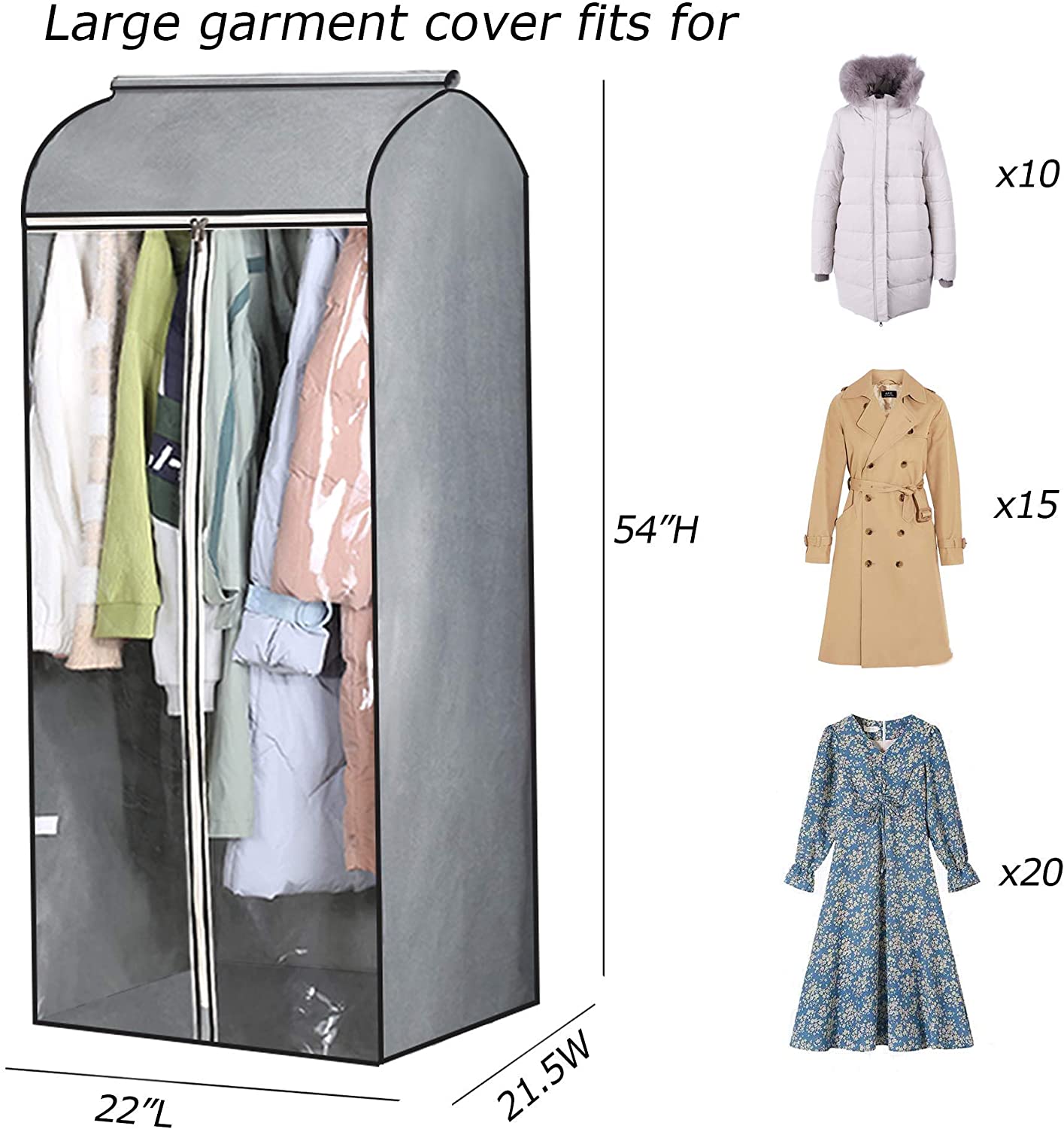 【Large Capacity】Suit bag can store 20pcs summer long dresses or 10pcs winter coats, ideal length for down jackets, gown dresses, silk blouses, shirts, hanging clothes bag keep your closet more organized, overall size is 22"L * 21"W * 54"H;