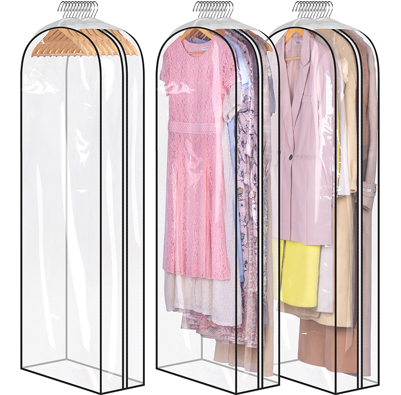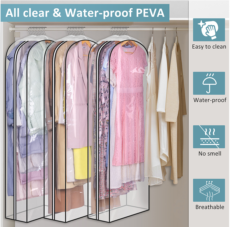 【Identify at A Glance】Dress bags for gowns long made of Clear&Water-proof PEVA, help to know what is inside instantly, you can find the clothes conveniently and quickly without opening hanging storage bags, and benefit from waterproof design, if it gets dirty, just gently wipe it with a wet towel;