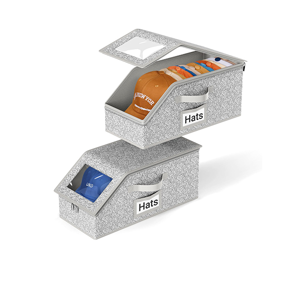 【Versatile Uses】: Hat organizer box can also convenient to store your miscellaneous items such as clothing, bedding, books, toys, scarves and more, side name card window for easy identification, can be stored in the bedroom, living room, wardrobe or car trunk.