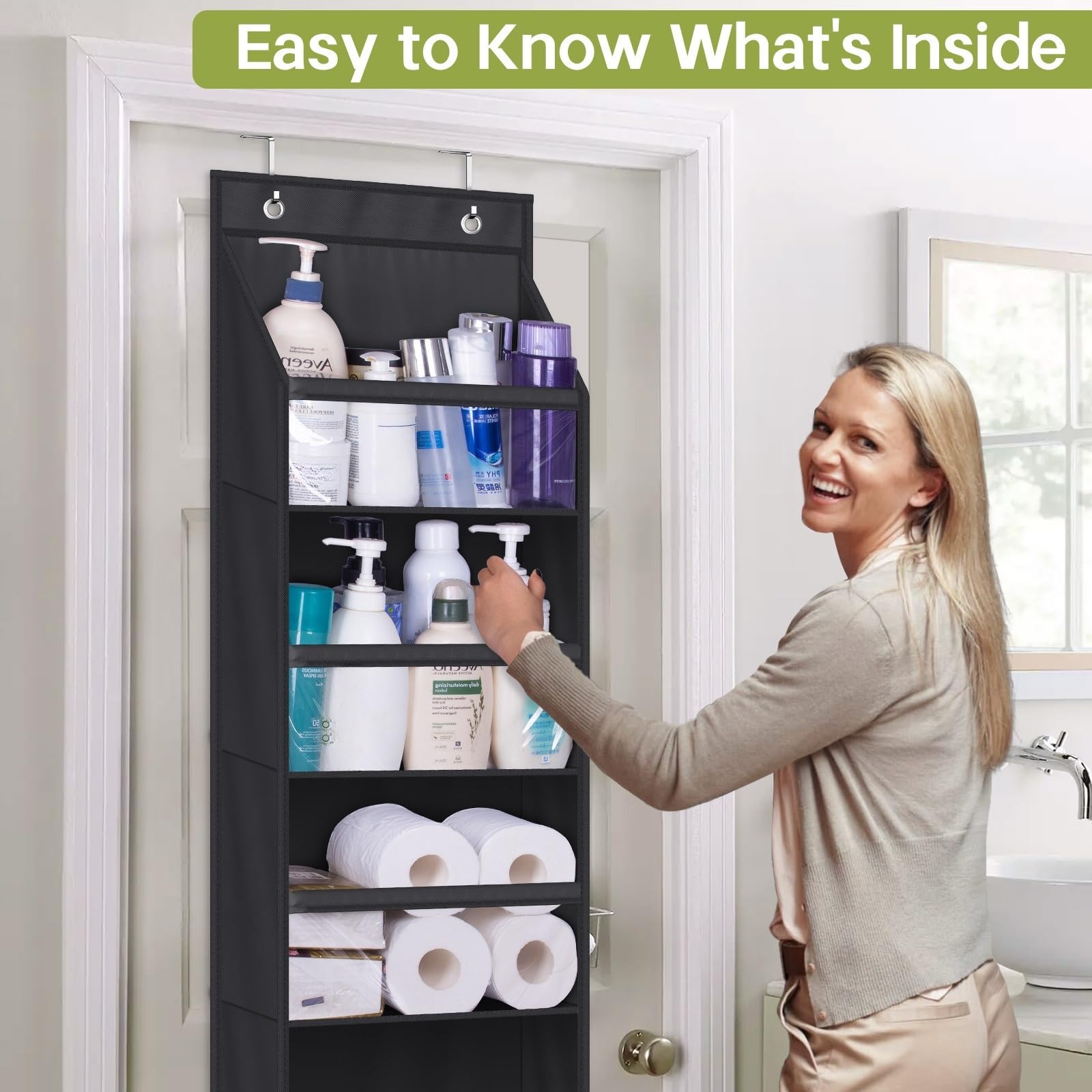 【Easy to Access】: The design of clear PVC window for over the door pantry organizer allows you to find the items you need at a glance, which is convenient and quick, makes it easier for you to access and can also avoid the confusion caused by improper storage;