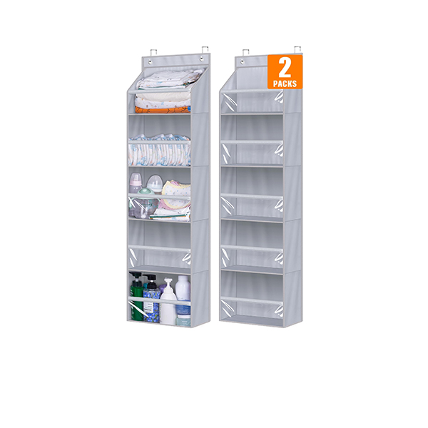 【2 Pack & Large Capacity】: 5 shelves baby storage organizer, suitable for narrow doors, it can hold a total of 200 diapers, 70 nursing bottles, 60 pairs of kids shoes etc. Size of the over the door storage is 12.2"W x 6.5"D x 53.3"H;