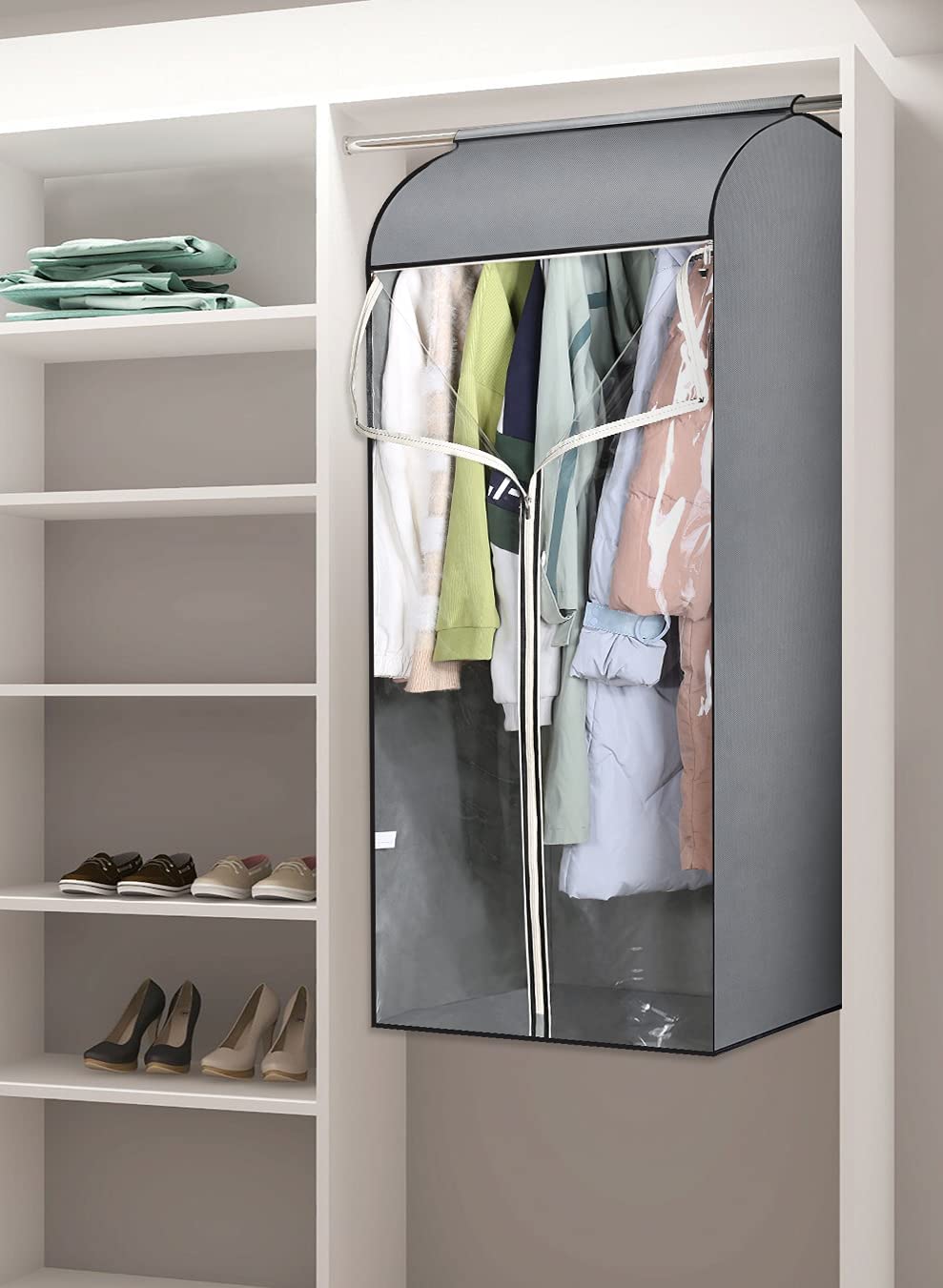 【Multi-Scene Use】Clothes cover can hang on standard closet rod, double clothes rack, closet pole, rod, as long as there is a hanging rod, garment bag organizer can be used in cloakrooms, wardrobes, hangers or stage costume rooms;