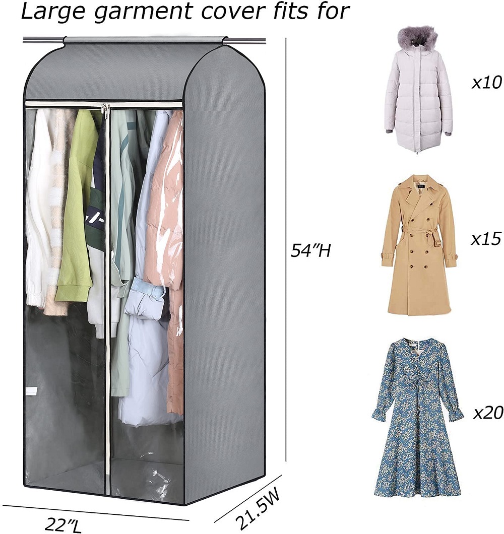 【2 Packs Large Capacity】Garment covers can store 20pcs summer long dresses or 10pcs winter coats, ideal length for down jackets, sweater, silk blouses, seasonal clothing, shirts, suits, dress bags make your closet more organized, overall size is 22"L * 21"W * 54"H;