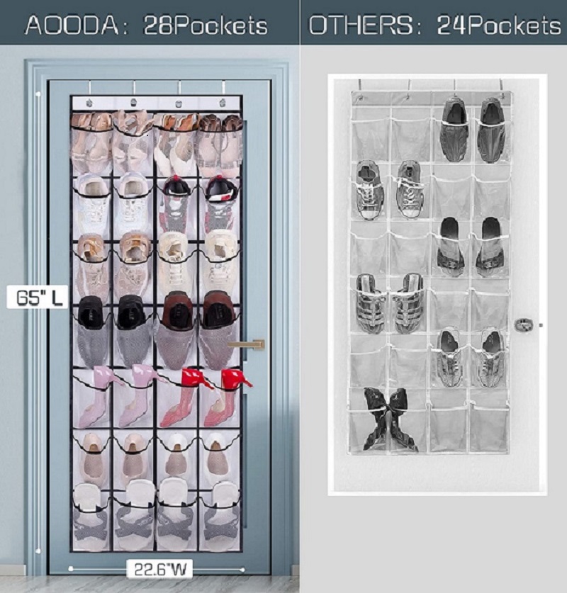 【More Pockets】: Door shoe storage with 28 large pockets in total, it has more 4 pockets than other similar hanging organizer, so shoe hanger organizer for closet can holding 14 pairs of men shoes at least, such as tennis shoes, sneakers, or 28 pairs of slippers, flip flops, sandals, heels, kids shoes etc;
