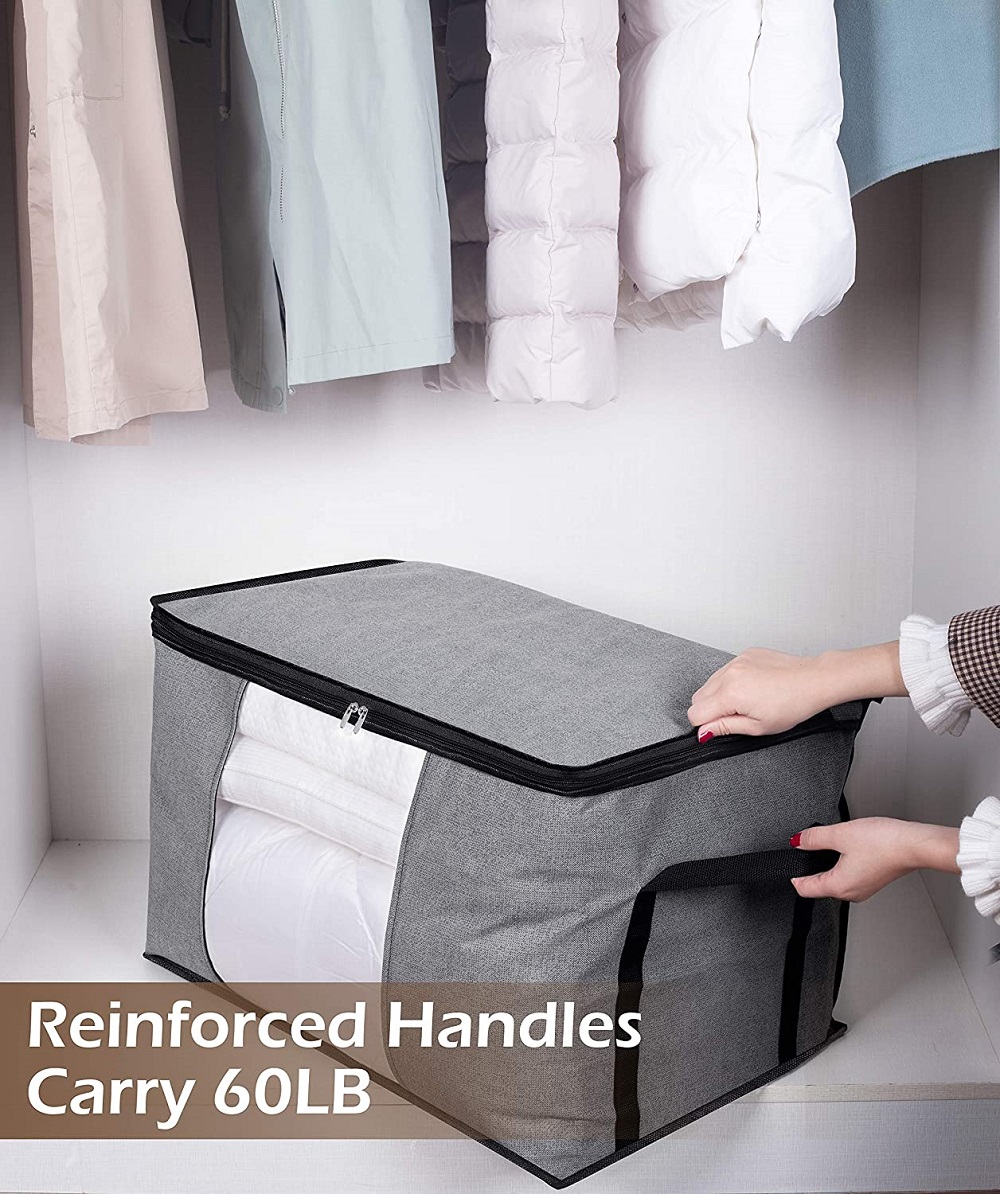 【Upgraded Durable Material】: Bedding storage bag is made from breathable thick non-woven fabric,ensuring that stored items are protected from dust. You don't need to worry about your clothes or comforters being dirty with the sweater storage bag;