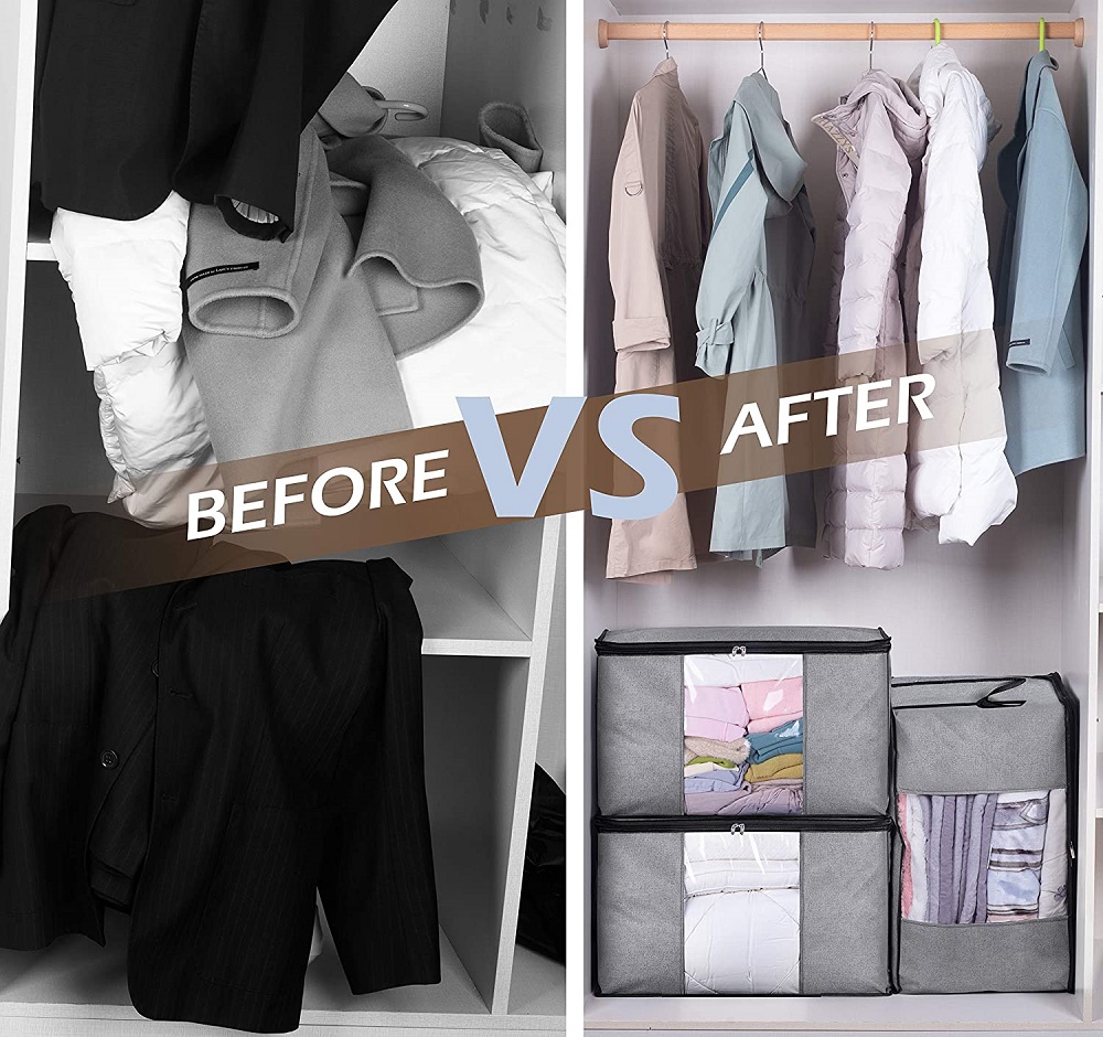【Applications】: Used for organizing seasonal apparel, saree, quilt, garment, linen, bedding sheets, holiday decorations, etc. closet clothes storage container bring a clean and tidy appearance to your home, room, college dorm, office, laundry, car, RV.