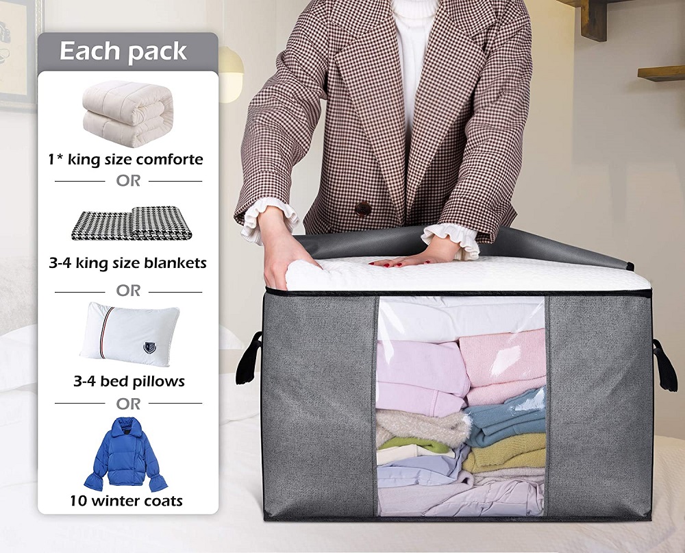 【Large Capacity】: Each one capacity with 85L, Large enough for a king size quilts and 2 pillows, or 10pcs off-seasonal winter coats or 40 pcs jackets or 4 king size blankets etc. Size of duvet storage : 23.6" (L)*15.7" (W)*14" (H);