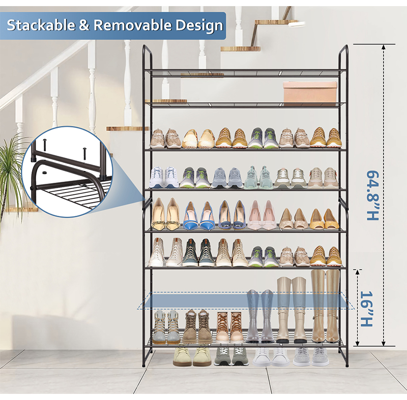 【Removable & Stackable】 Gone are the days of your shoes scattered around, if you want to increase utility of room space, long shoe rack can remove one or two layers to fit high boots, you can also vertically stack into a 8-tier adjustable shoe rack for store more shoes, instead of piling shoes in the corner;