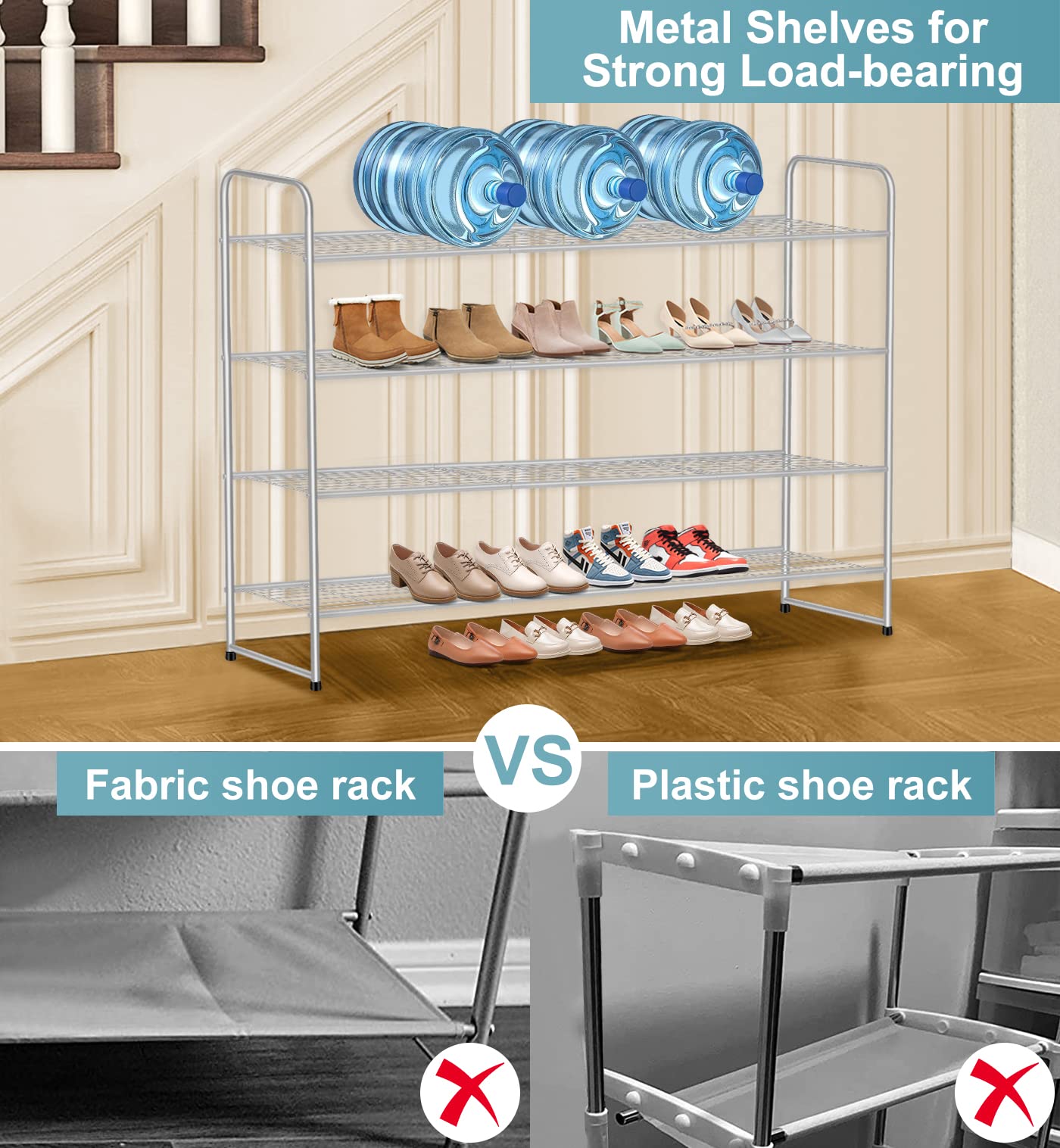【The More Stable, the Better!】 Shoe rack for entryway made of anti-rust metal pipes and wired grid, strong load-bearing (each layer can bear about 11-15 lb), shoe rack for closet is different from the cloth shoe rack that sags obviously when shoes are put in, also can store water bottles, drinks or small kitchen appliances;