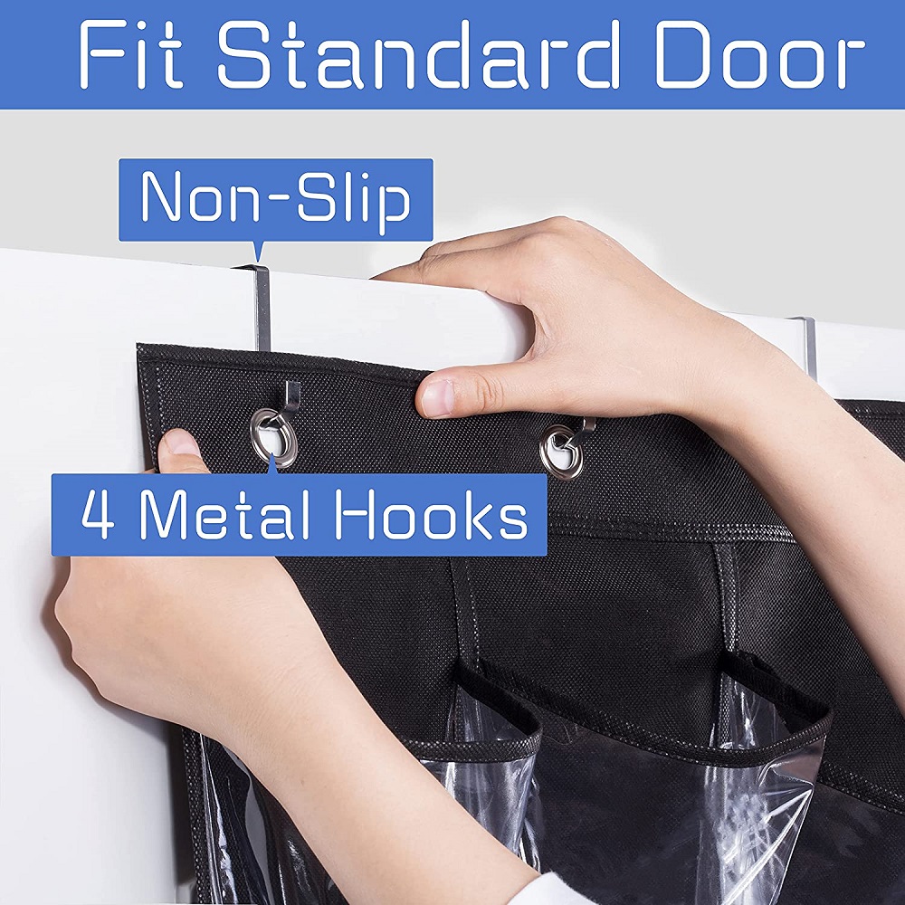 Easy to Install: Behind closet door shoe rack organizer with 8 metal hooks, shoe bags storage closet fits standard door(thickness between 1.37" to 1.65"), each sneaker holder has 4 hooks for stability and weight distribution;