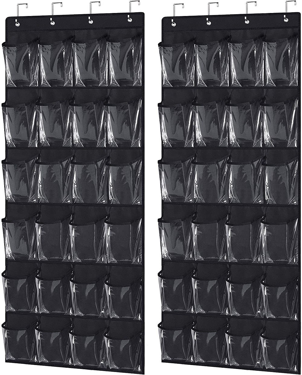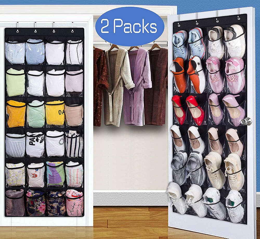 2 Packs Clear Hanging Shoe Organizer with 24 Large Pockets