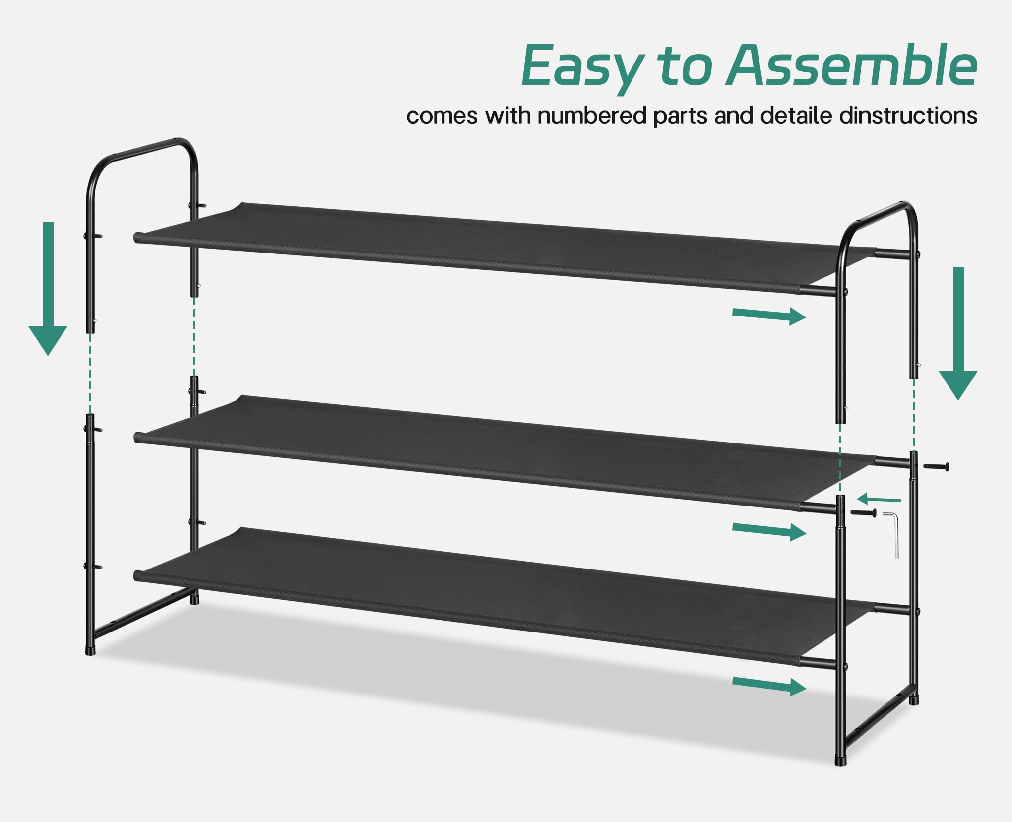 【Boots Storage Space】: The height of each tier is 8", fit high heels, ankle boots, hiking boots well. shoe rack for closet floor is suitable for most spaces and can be placed in bedroom, living room, apartment, garage, hallway, dorm, entrance and mudroom or anywhere you need extra storage;